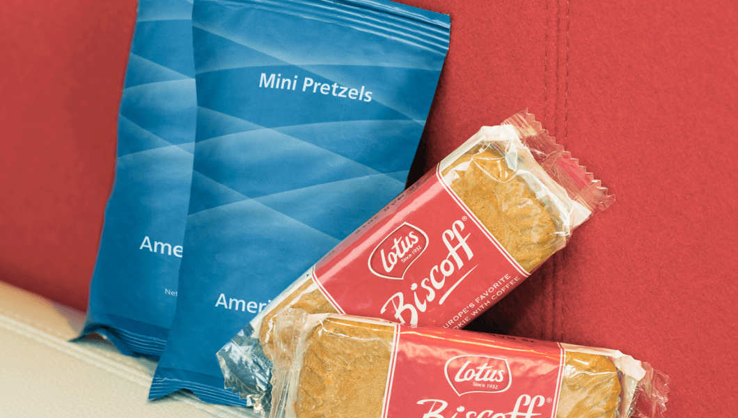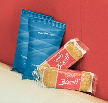We offer fresh coffee, tea, juice, water and soft drinks, as well as complimentary snacks on board. Executive Platinum and Concierge Key members also get a complimentary alcoholic drink and food menu item during their flight.
